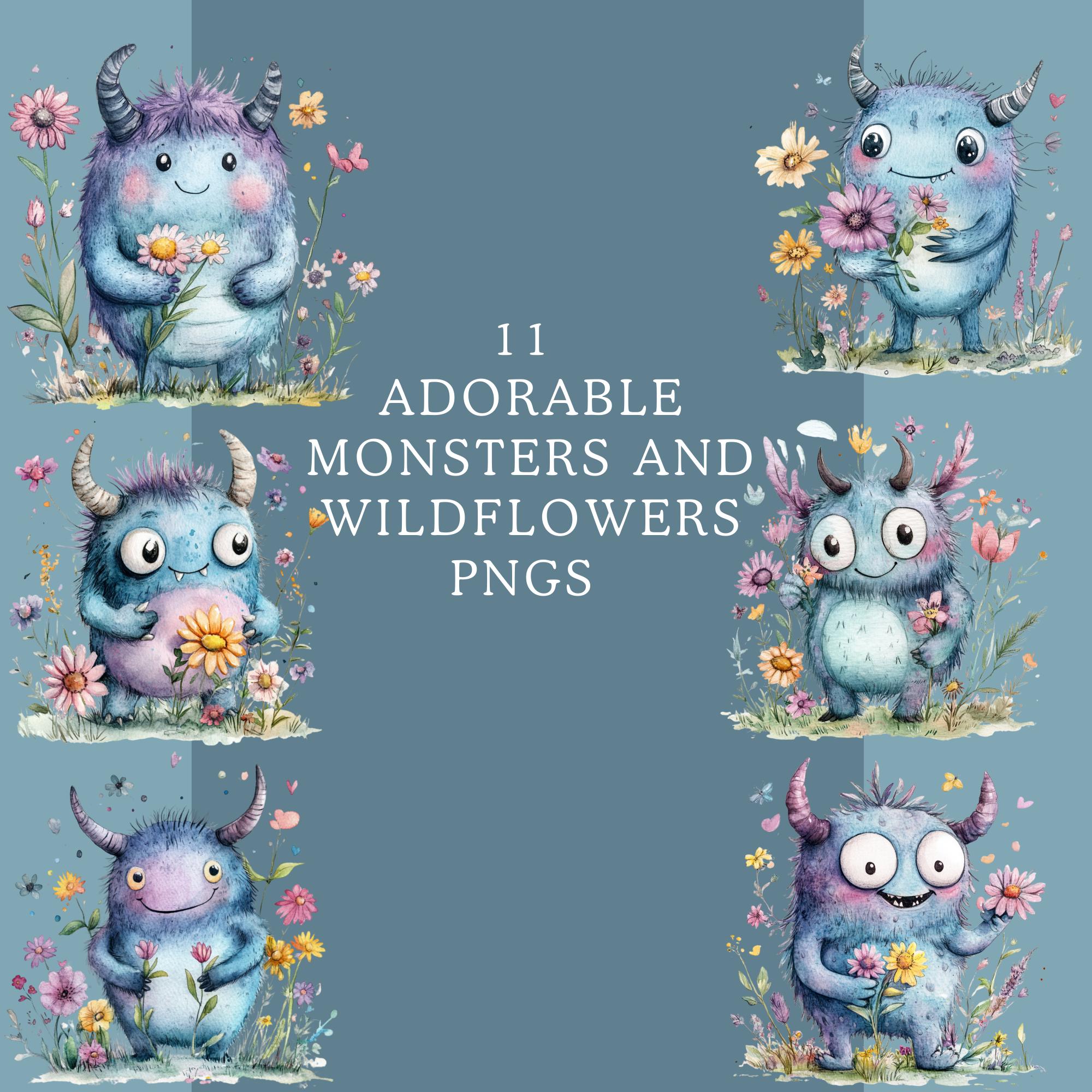 🌼 Adorable Monsters & Wildflower Clipart – 11 Cute Creatures for Kids' Designs! 🌿