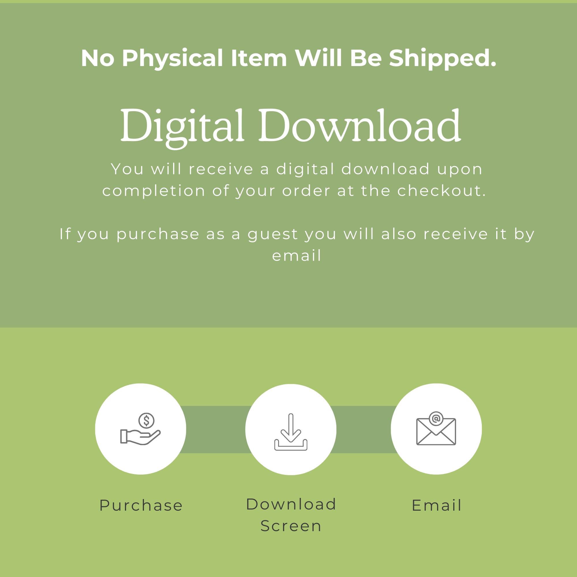 If you experience any issues downloading your files, please check your Etsy purchases page. If the issue persists, feel free to message us, and we’ll be happy to assist!