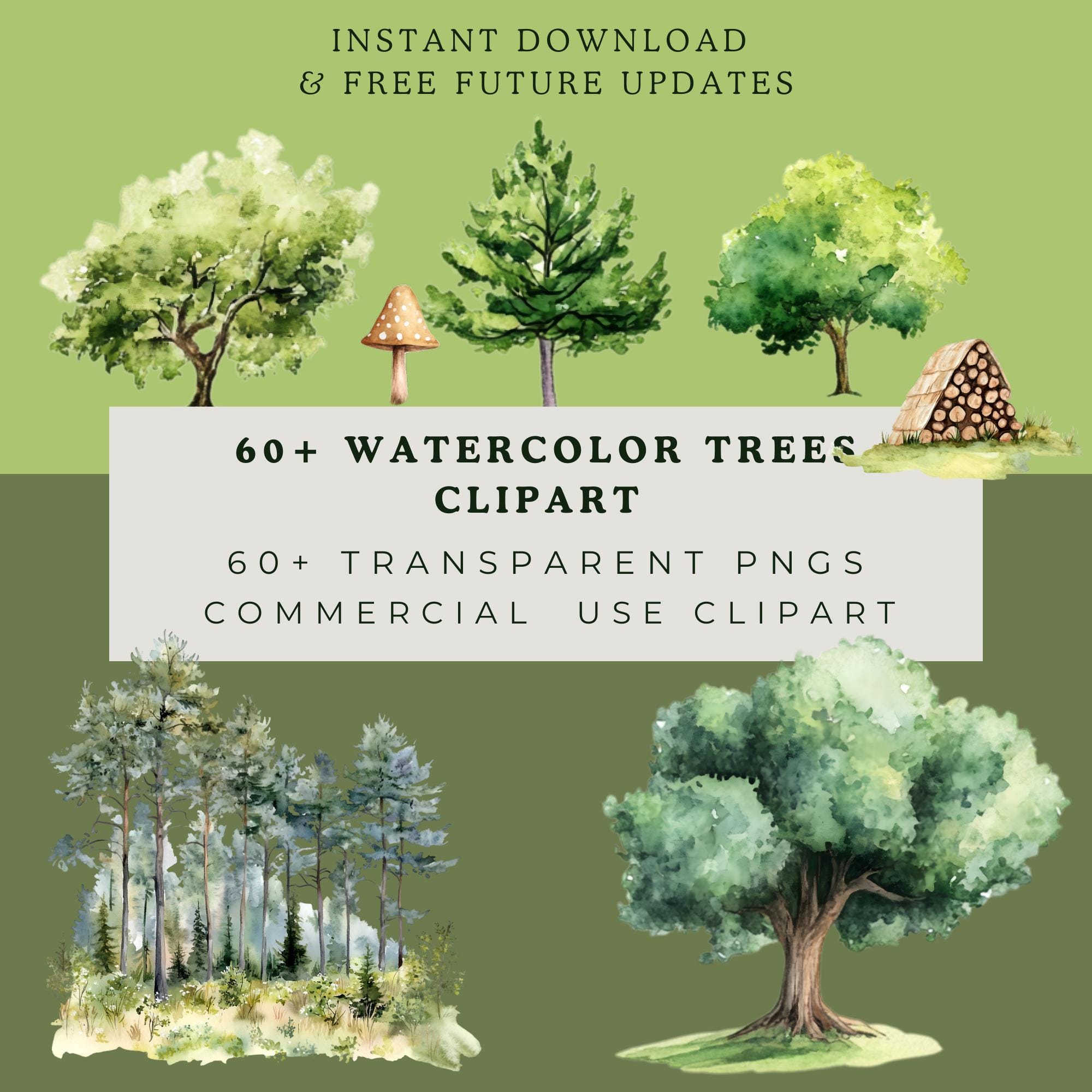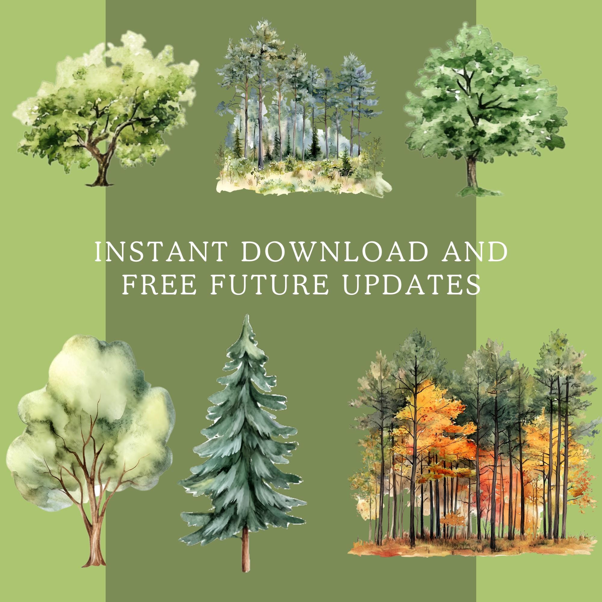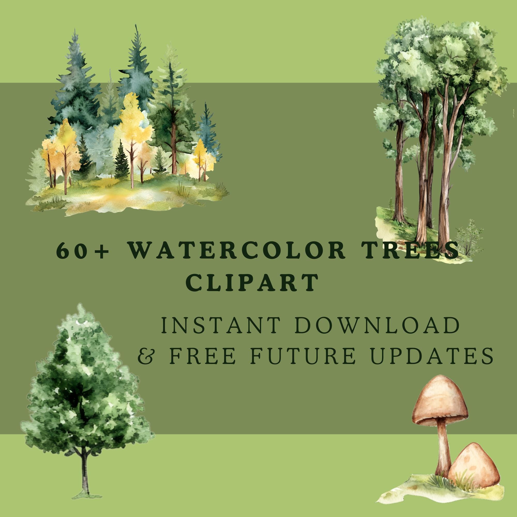 🌲 Create dreamy, nature-inspired designs with ease! Grab this growing Watercolor Trees Bundle today and enjoy all future updates for free! 🚀